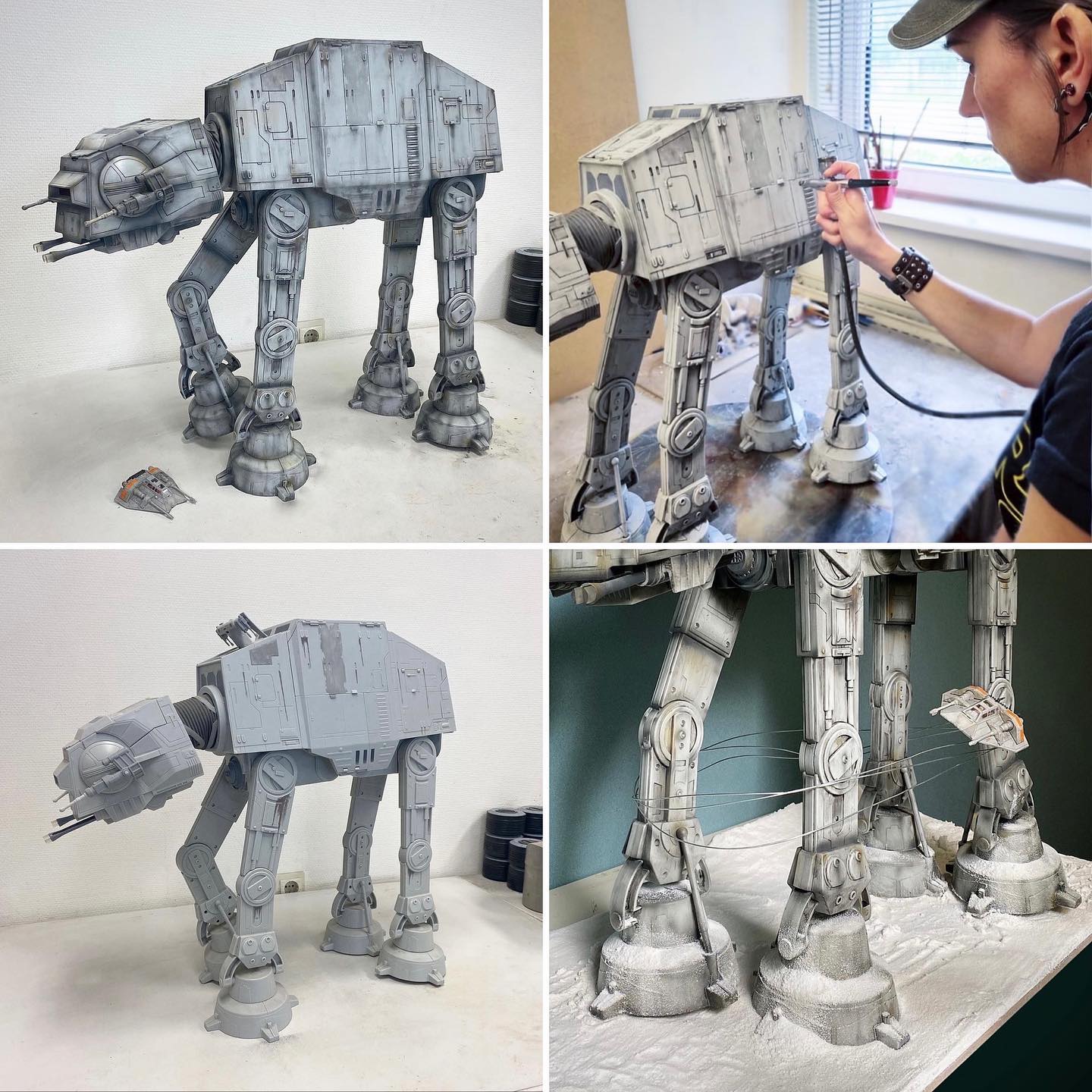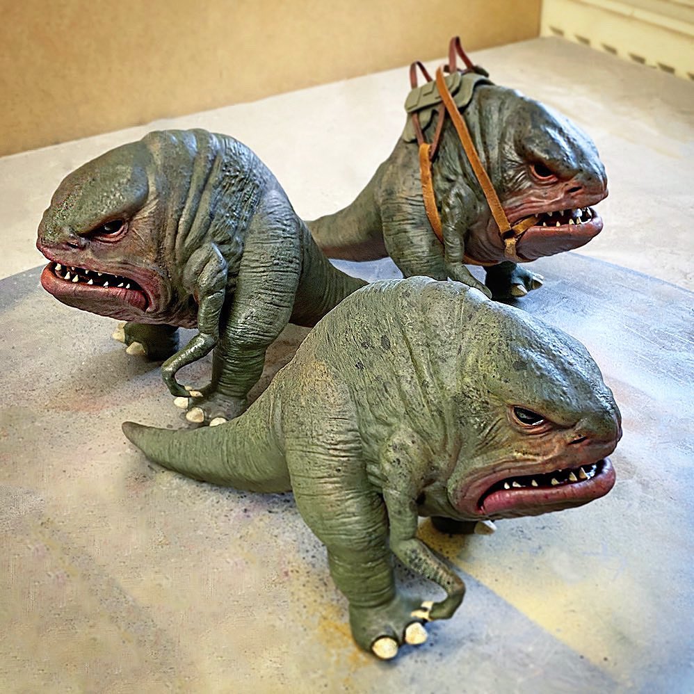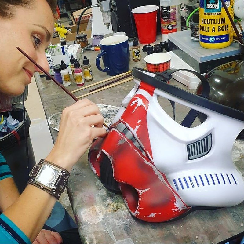 I sculpt creatures from clay or foam and craft props like custom masks, helmets and cosplay accessories. Some feature LED lighting for added visual impact. Using advanced weathering techniques, I create realistic aging and wear on action figures and model vehicles, achieving an authentically worn look – just like the battle-worn Star Wars figures shown below. With available digital files, I can bring your ideas to life through high-quality 3D printing. Check out some of my work on this page.